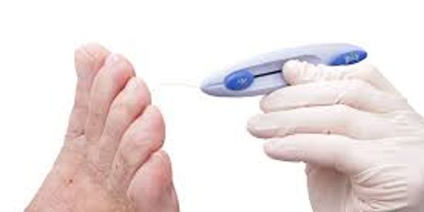 Diabetes can lead to a reduced blood flow to your feet. This is tested using a Doppler so we can listen to your circulation. It is important to check blood flow as a reduced circulation may lead to a delay in healing if you have any cuts on your feet, which could lead to an increased risk of infection.