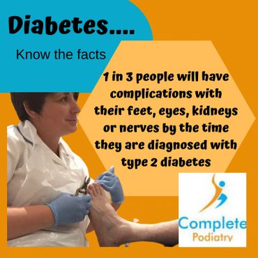 Diabetes can cause several foot complications therefore it is important to ensure your feet are checked regularly, and you have regular checks from your Podiatrist.