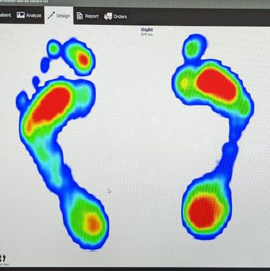 During assessment we use a force plate to analysis the pressures going through your feet when standing, balancing and walking.